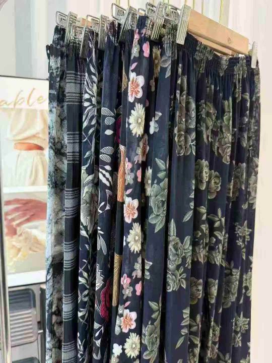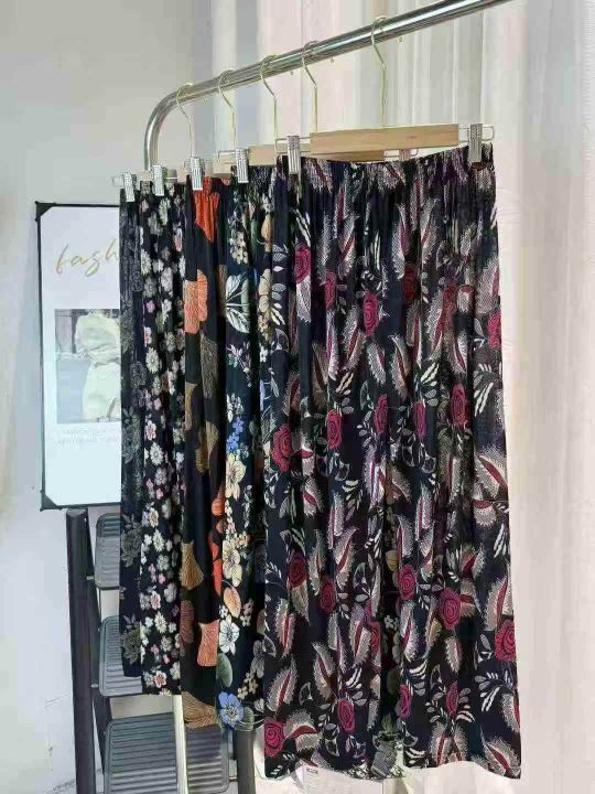 10000条\'妈妈冰丝长裤女宽松加大加肥休闲奶奶花裤子中老年阔腿裤,多色,均码,100/200起+0.5