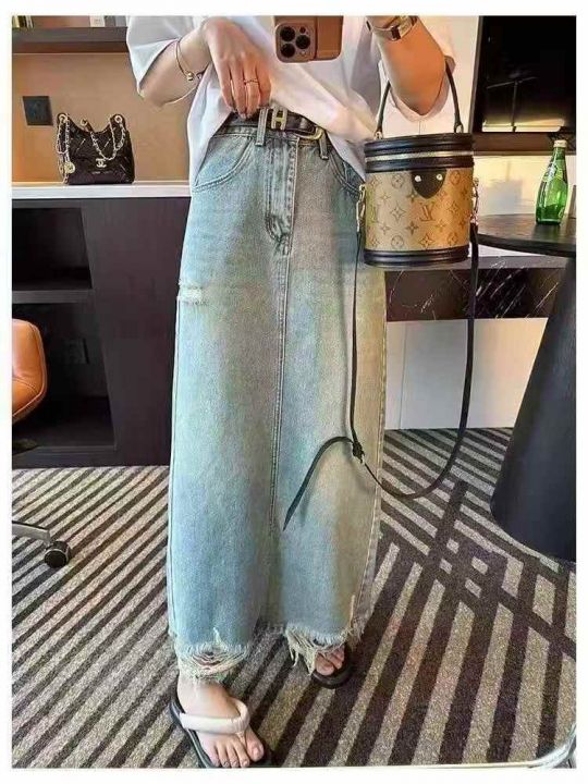 牛仔长裙不规则开叉牛仔半身裙女新款夏季高腰a字中长款包臀裙350条全清10.8...