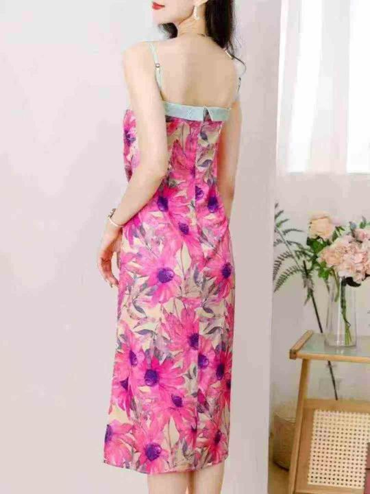 法式复古碎花拼接吊带连衣裙女士夏季新款气质修身高端...