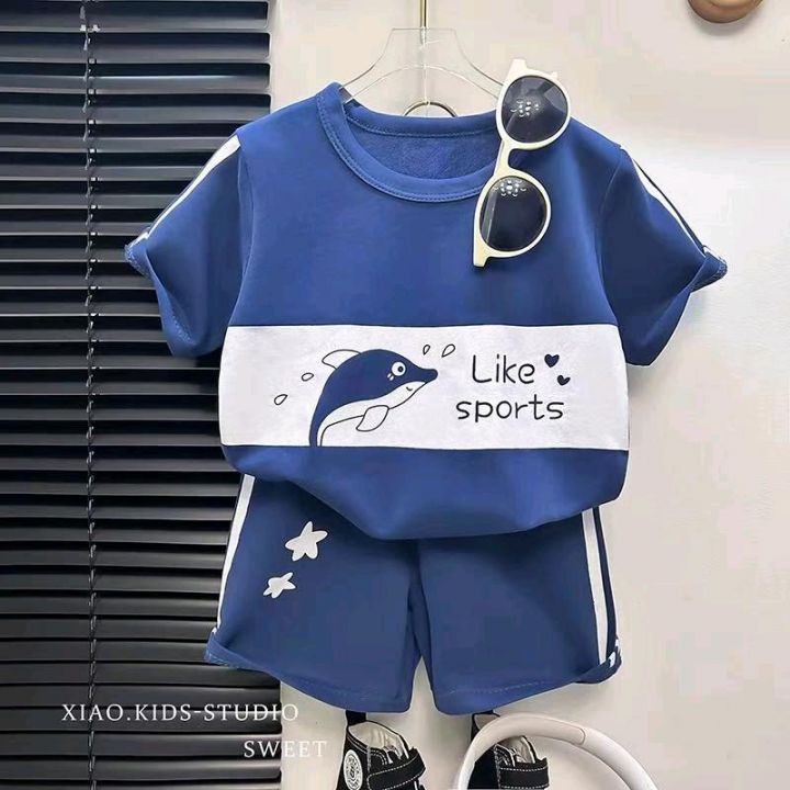 夏季新款品牌外贸原单美式宽松华衬衣短裤2件套套装,独立包装,可穿120--16...