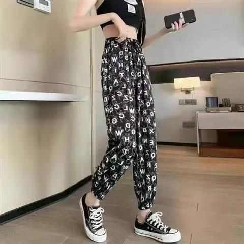 1045条夏季新款冰丝裤女垂感宽松九分束脚休闲防蚊裤,有弹,尺码2-5,独立...