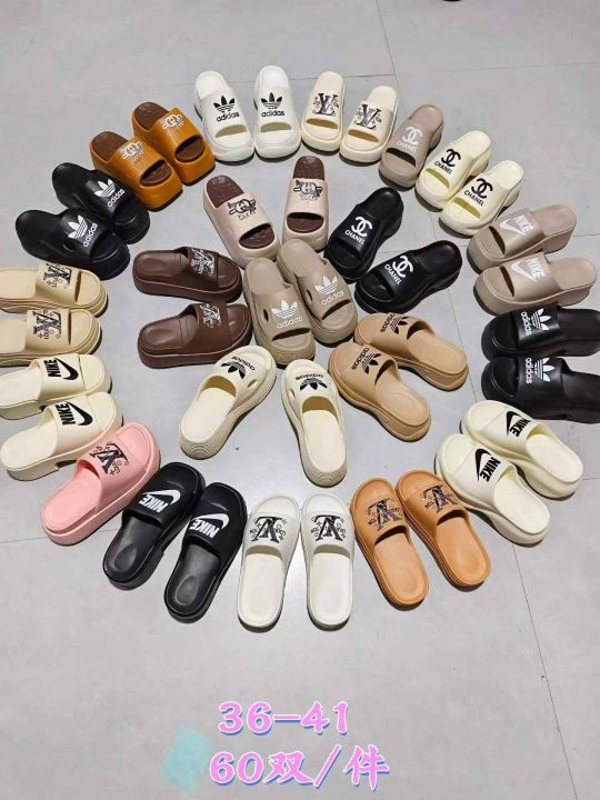 阿迪达斯,耐克,香奈尔,古驰,LV等国际大品牌厚底(底厚7~9CM)女拖少量到货。EVA高弹橡塑材质,码子36-41.一件60双,处理价[握手]