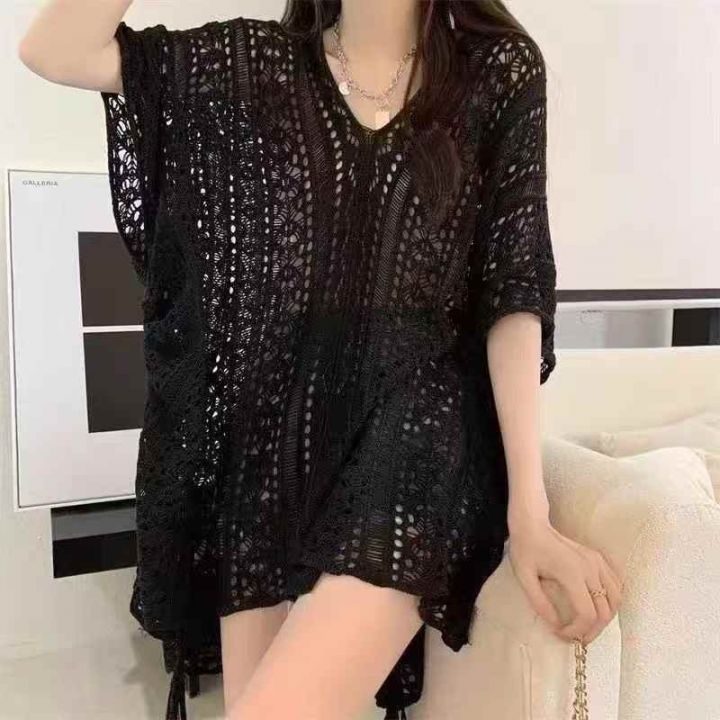 全清9.948件「法式针织」慵懒休闲度假风镂空罩衫女宽松透视百搭薄款织衫外...