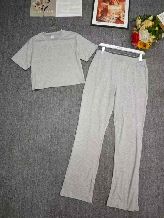 电商仓回收475套辣妹灰色短袖微喇裤运动休闲套装,码数S-2XL。单色两个款,面料柔软有弹性,独立包装。分货➕ 1
