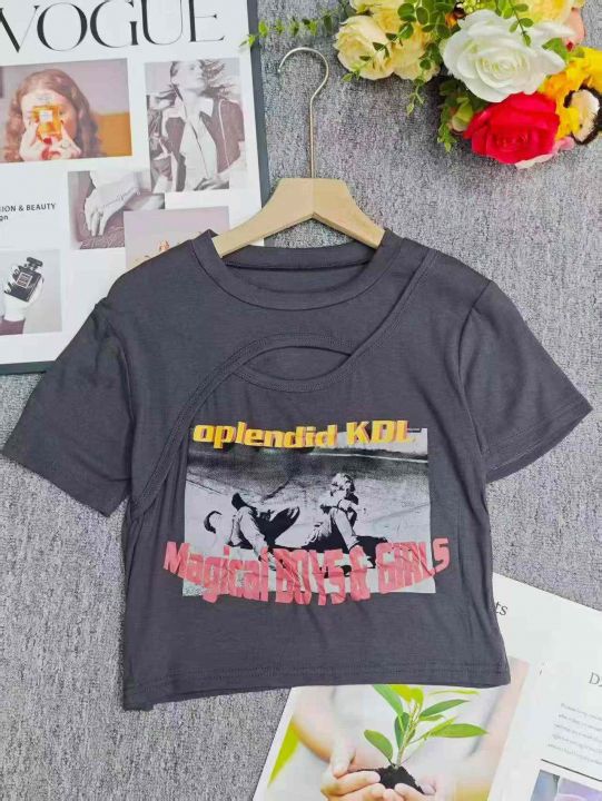 3.8清电商仓回收192件美式复古辣妹镂空印花设计感短袖...