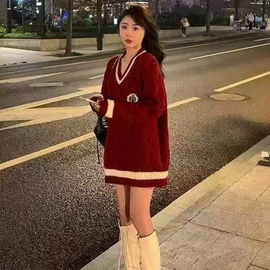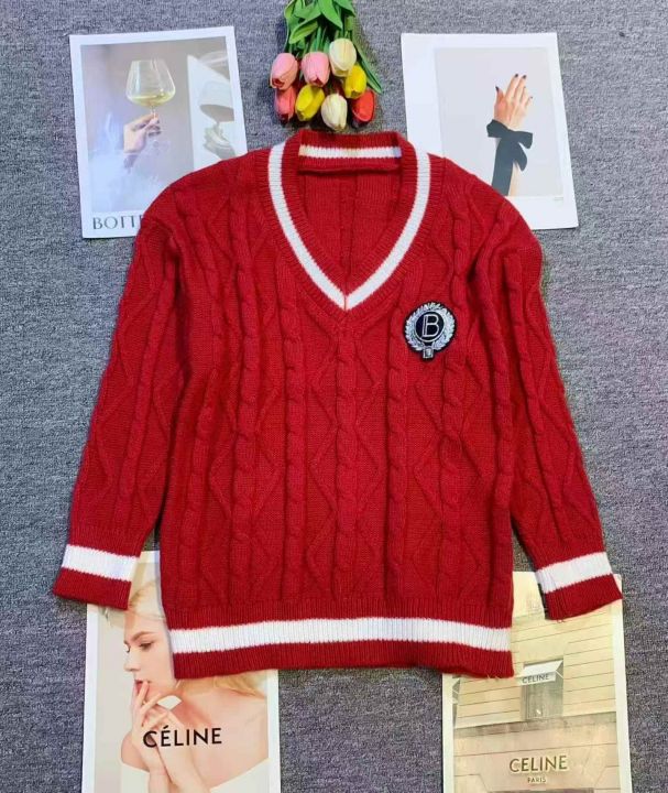 韩系减龄麻花V领撞色宽松显瘦针织毛衣,[爱心]95件左右,均码,款号#1277,穿70-130斤,万佳档口货,原包装️无瑕疵,[666]实体店品质