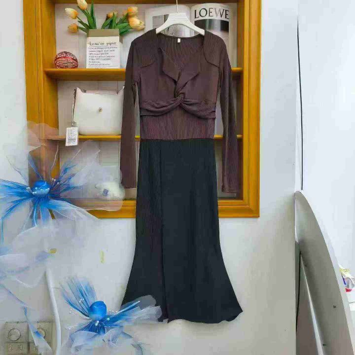 ① 高级感交叉扭结翻领长袖鱼尾连衣长裙!高弹力,独立包装,码数S-XL,数量700件左右,全清8.8元