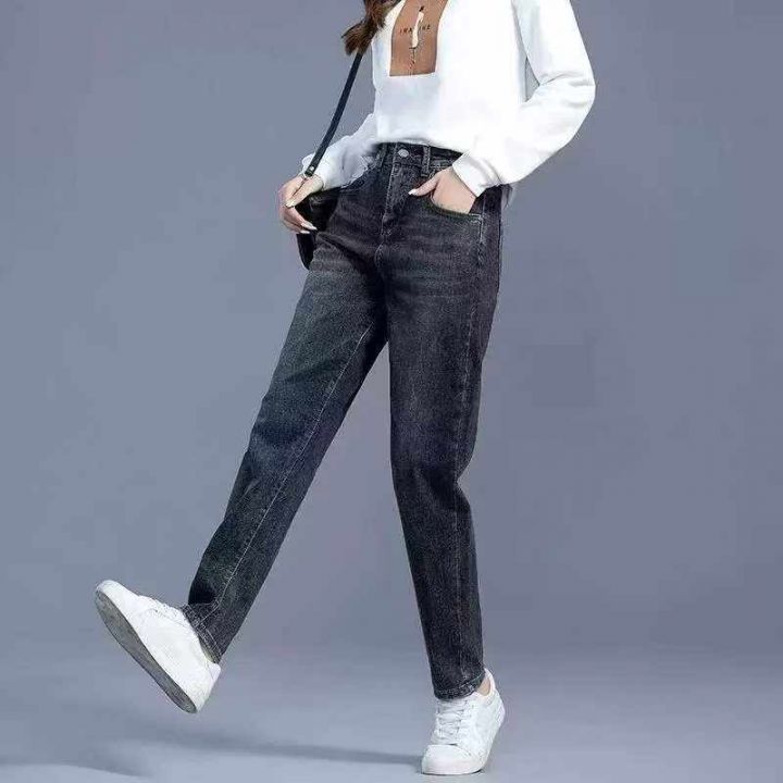 春夏季新款网红复古洗水棉半松紧腰哈伦牛仔老爹裤,独立包装带吊牌,码数S-...