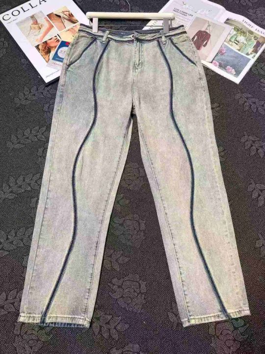 复古男女同款做旧直筒牛仔裤 866件大整款,全清11.8元 分货12.8元,正品独立包装,货品干净,码数:28到34(S到4XL),美式复古设计感明线浅色牛仔裤男女同款高街潮牌直筒垂感长裤。
