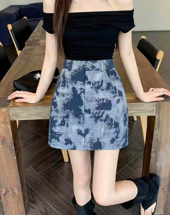 水墨半身裙新款短裙高腰包臀裙a字牛仔短裙女200条全清...