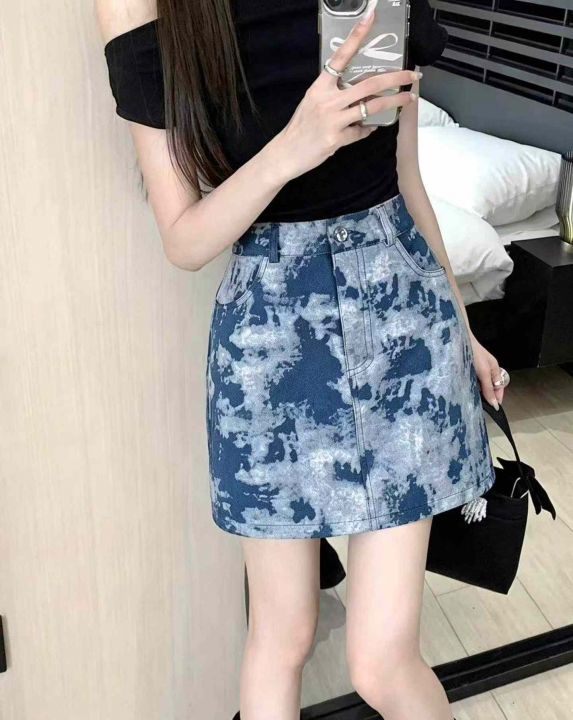 水墨半身裙新款短裙高腰包臀裙a字牛仔短裙女200条全清9.8元,码数S到XL,正品独立包装[庆祝][庆祝][庆祝]