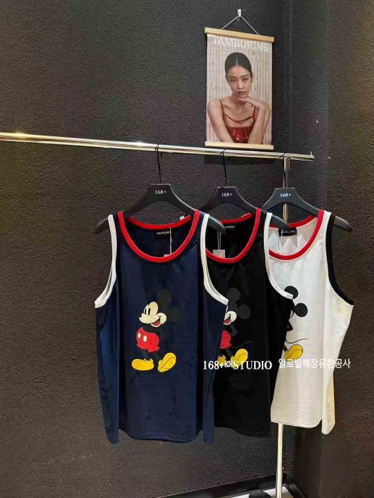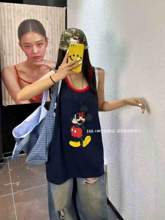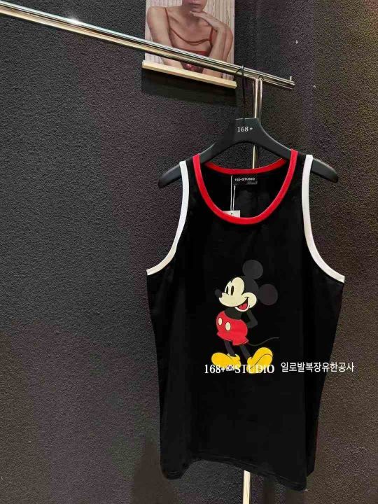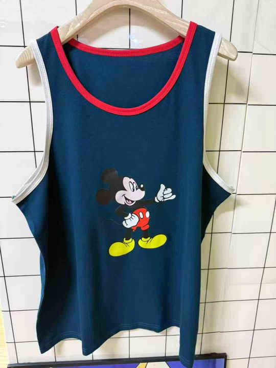 4.8清495件女生卡通米奇纯棉印花撞色 大码外穿家居上衣背心女新款宽松韩版无袖打底衫遮屁股 宽松版型 均码 独立拉链包装