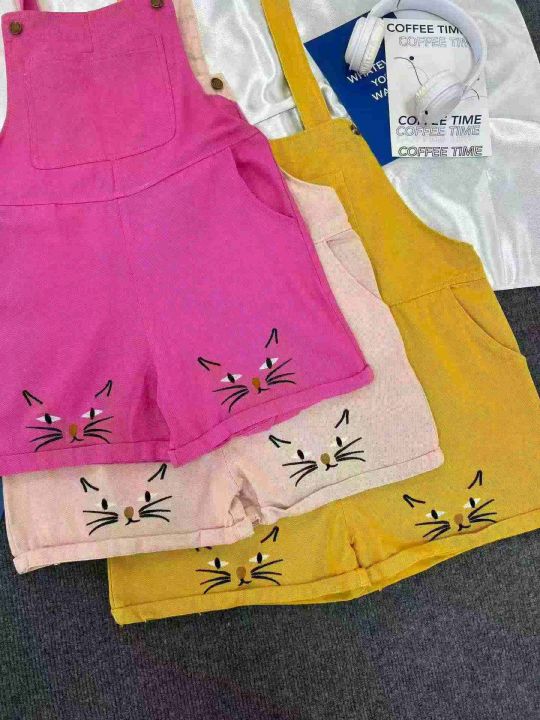刺绣猫咪牛仔背带短裤357条全清8.8元,分货9.9元,码...