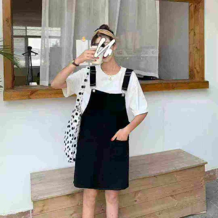 夏季韩版chic牛仔背带短裙女宽松百搭休闲显瘦背带短裙158条全清8.8元,码数S到XXL,黑白色,正品独立包装[庆祝][庆祝][庆祝]