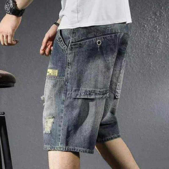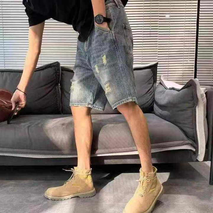 夏季新款高品质原单男士宽松设计款破洞牛仔短裤,独立...