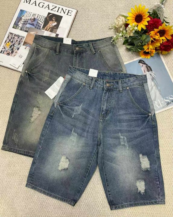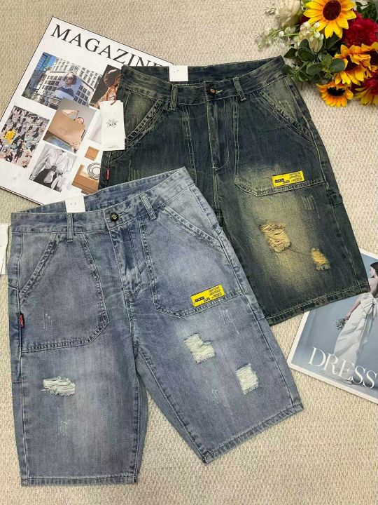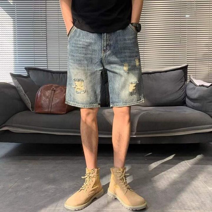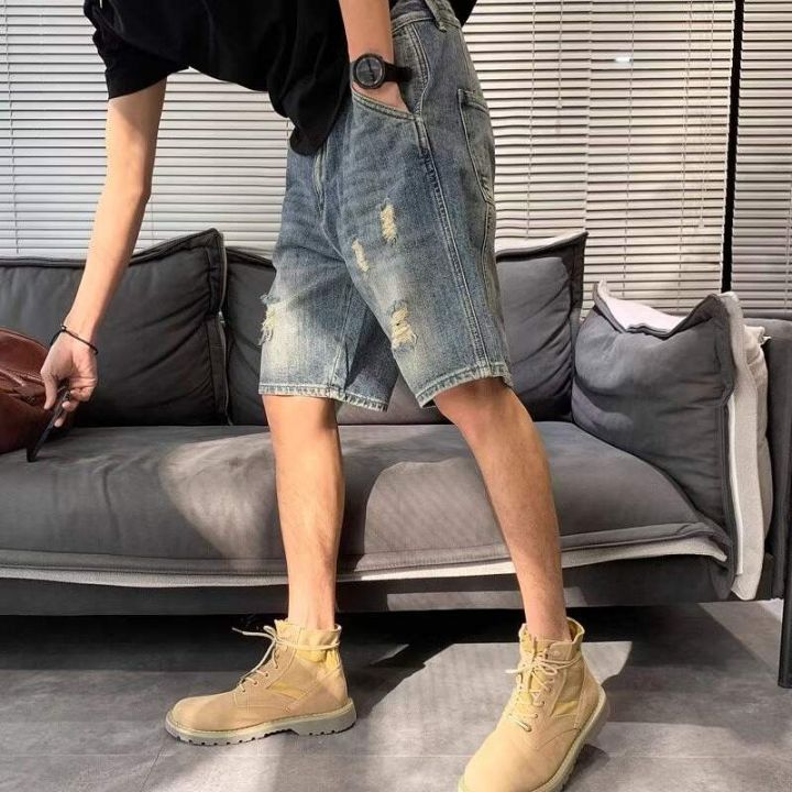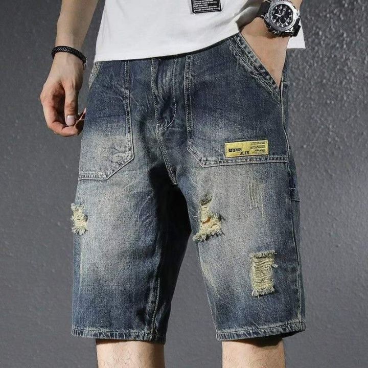 夏季新款高品质原单男士宽松设计款破洞牛仔短裤,独立...