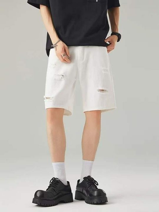夏季新款网红复古破洞男士洗水棉牛仔短裤,独立包装带...