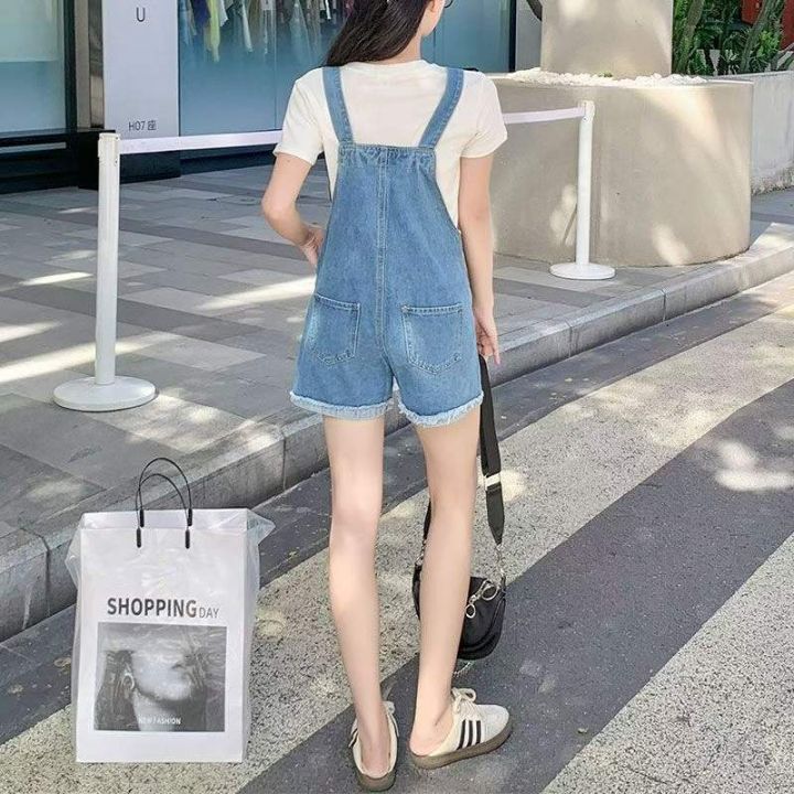 夏季新款复古洗水棉设计款牛仔背带短裤,独立包装带吊...
