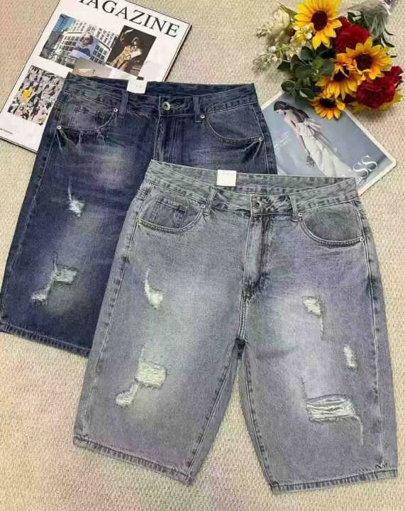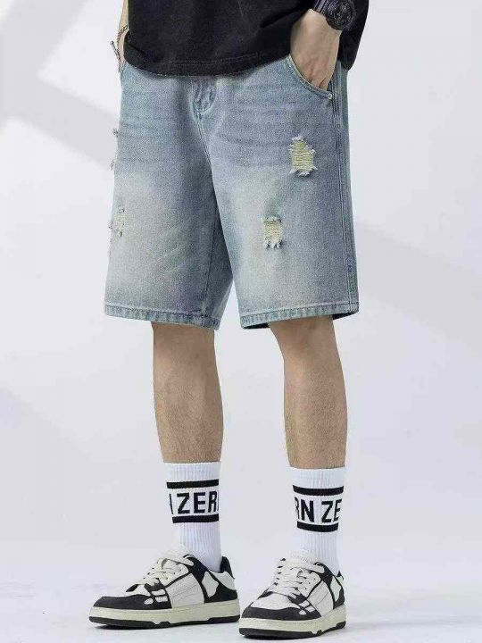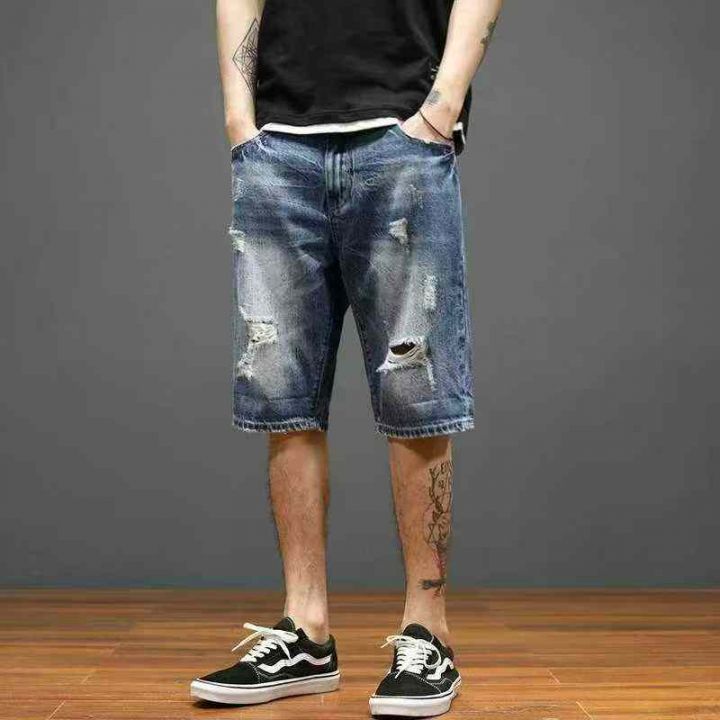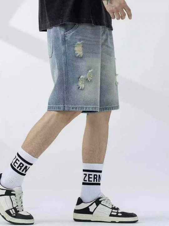 夏季新款高品质原单男士宽松设计款破洞牛仔短裤,独立...