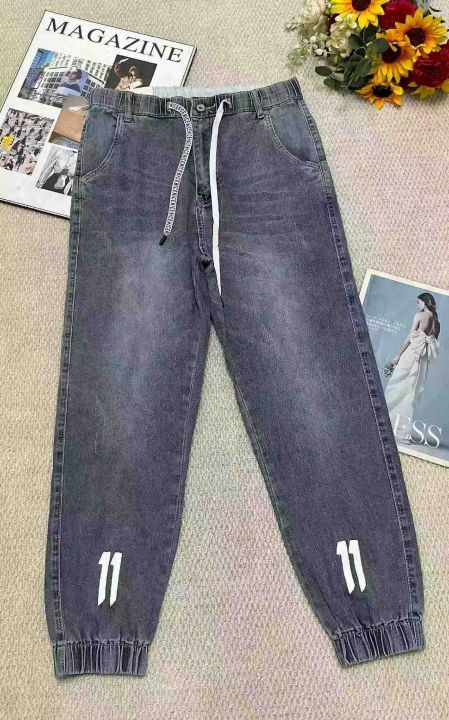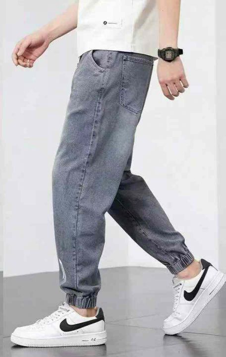 春季新款高品质男士松紧腰牛仔束脚裤,独立包装带吊牌...