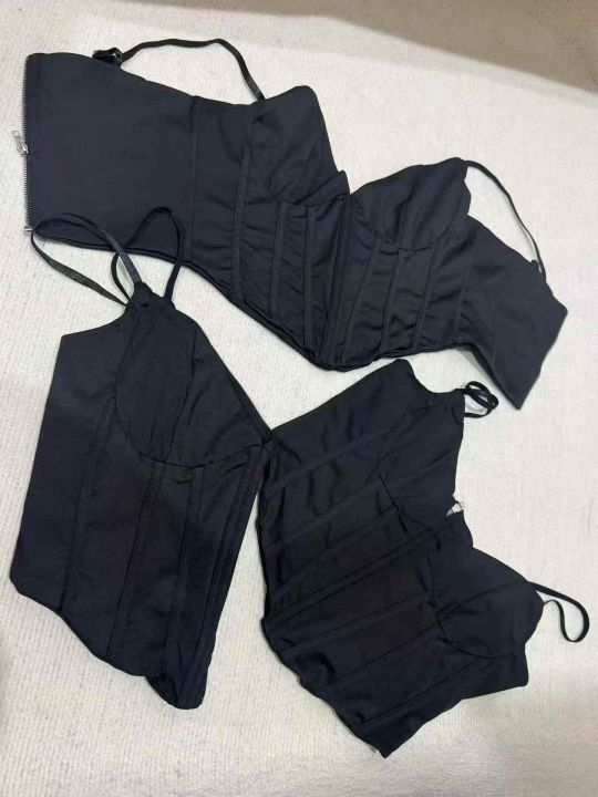女装黑色高级鱼骨抹胸吊带辣妹背心束身衣显瘦性感打底上衣