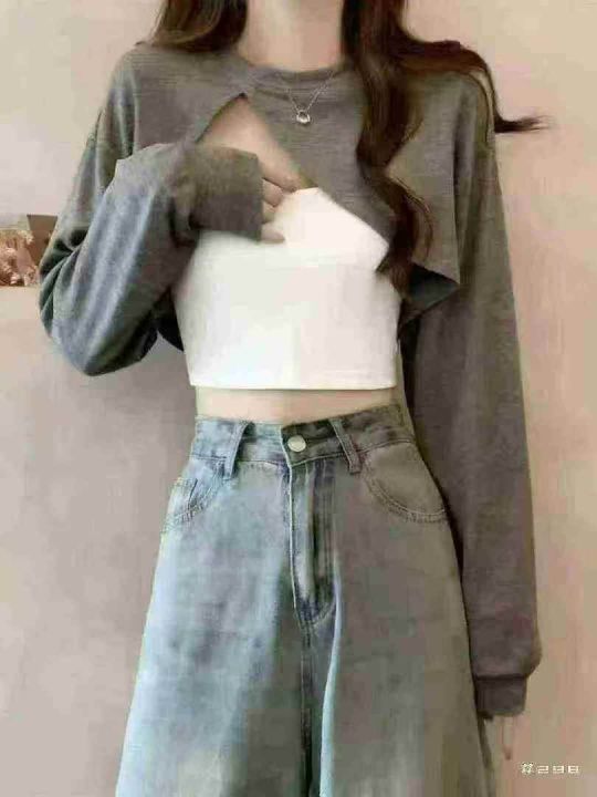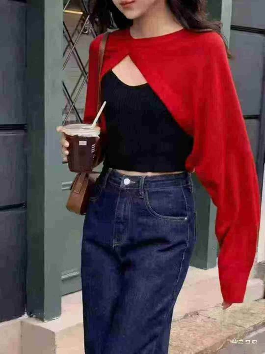 1280套左右春秋新品小香风高级感时尚搭配甜酷辣妹针织毛衣+针织抹胸2件套,独立包装,均码,面料软糯舒适弹力大,亏本全清4.8