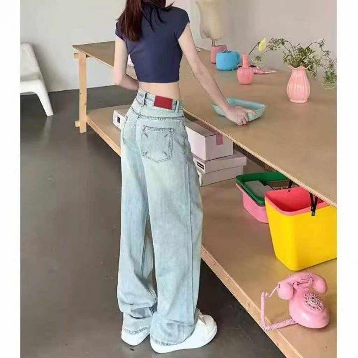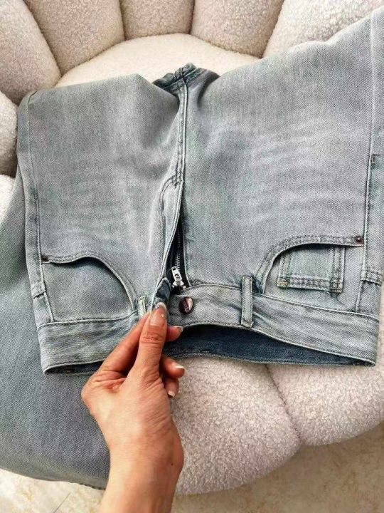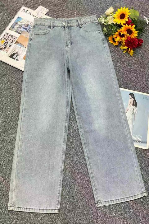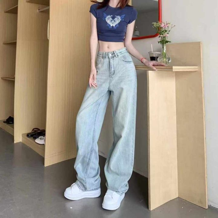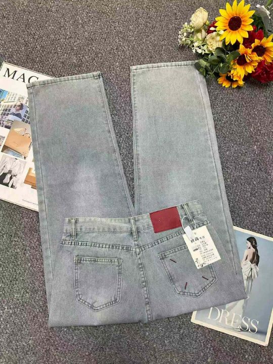 春季新款网红复古洗水棉直筒阔腿牛仔裤,独立包装带腰...