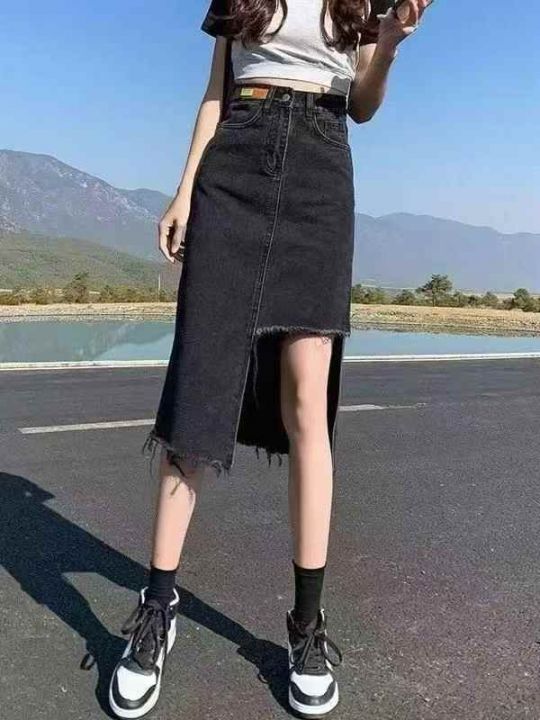 牛仔长裙不规则开叉牛仔半身裙女新款夏季高腰a字中长款包臀裙350条全清10.8...