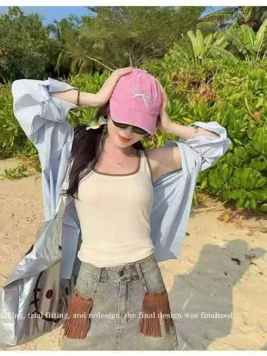 清3.8分货➕0.5新款方领撞色背心女内搭春夏新款宽肩带...