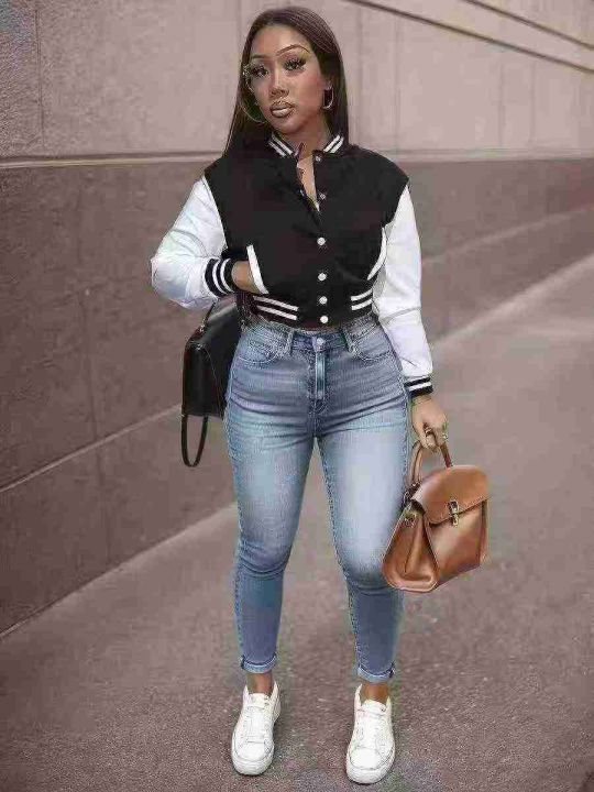 B52一325,码数XS一L,数量1160件左右,全部独立,虽然是拼色,全部黑色处和白色处都有隔开,不用拍染色,拼色棒球服,女装棒球服,外贸内销都可以,分货➕1