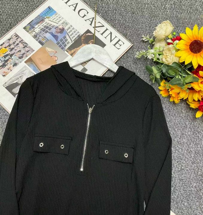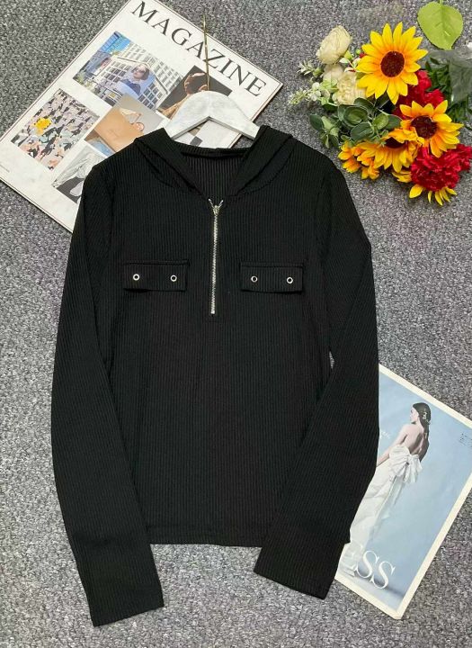 春季新款半拉链纯欲风性感显胸大弹力修身显瘦洋气连帽上衣,面料柔软有弹力,码数XS-L码,53件,全清5.9元超低价秒杀!