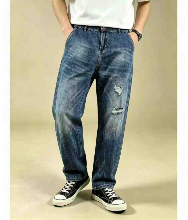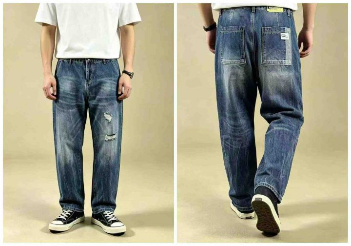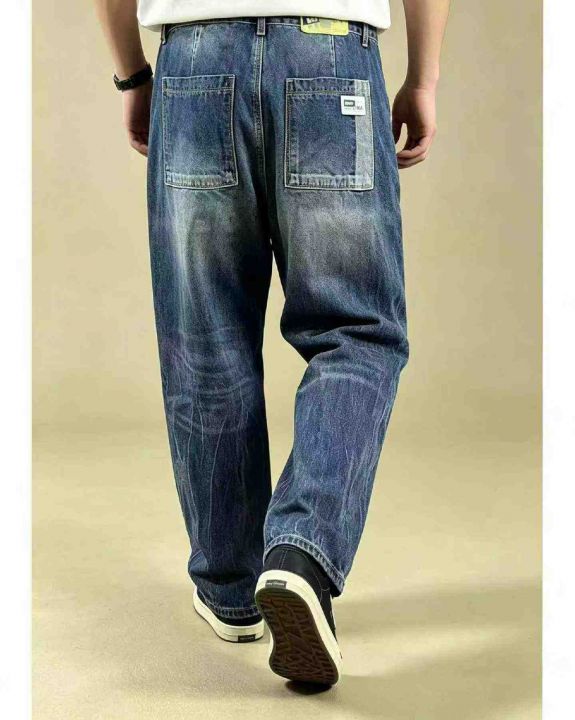春季新款高端美式复古洗水棉男款宽松设计款牛仔裤,独...