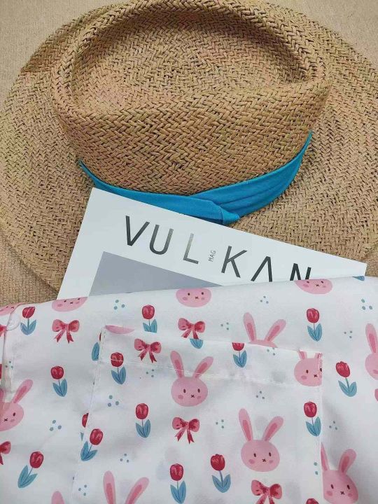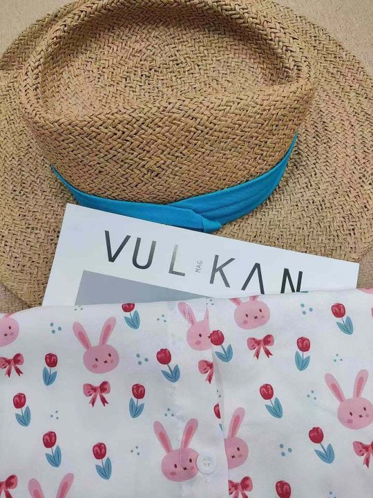 [月亮]:港味甜美兔子满印宽松短袖衬衫