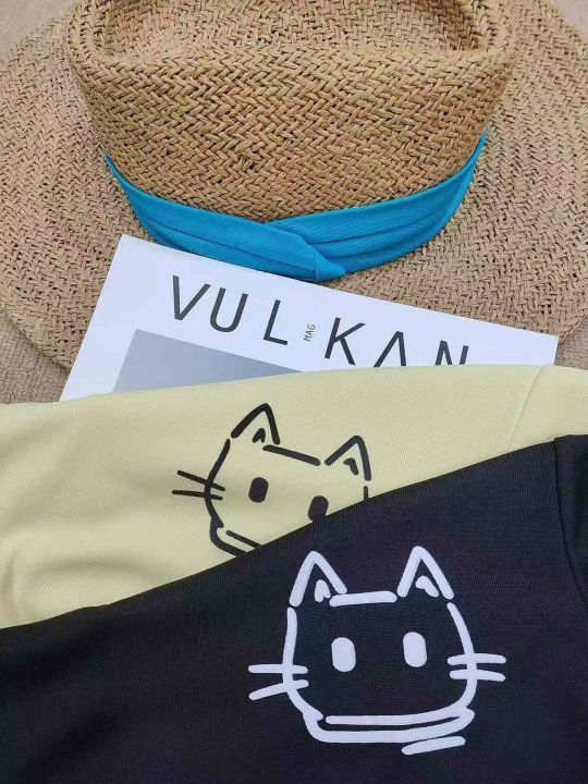 [月亮]:夏季正肩V领猫咪印花短袖T恤