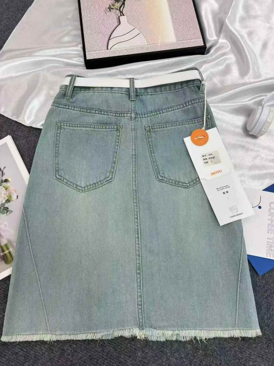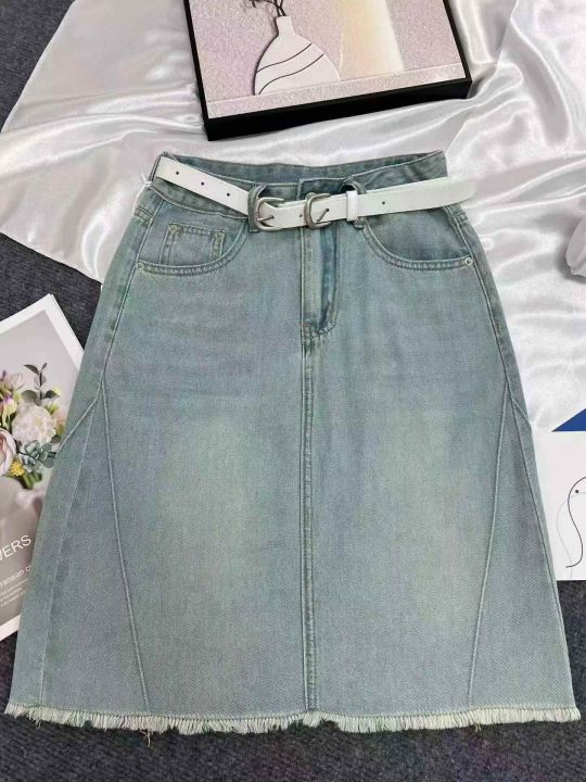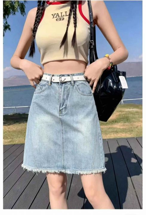 柔软好面料浅蓝色牛仔半身裙女夏薄款显瘦设计感a字包臀裙10条全清9.8元,码数S到XL都有,每一条都有配皮带[庆祝][庆祝][庆祝]