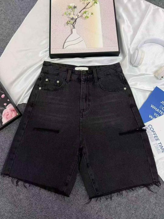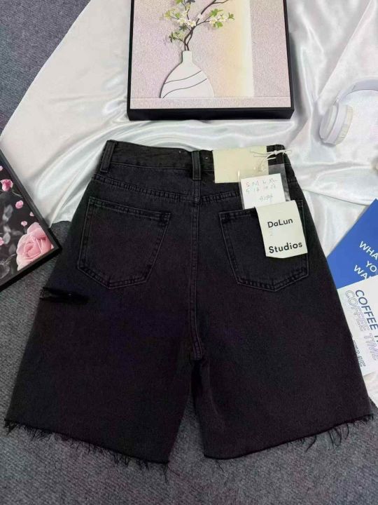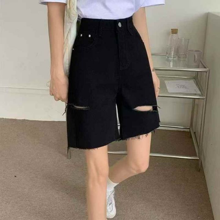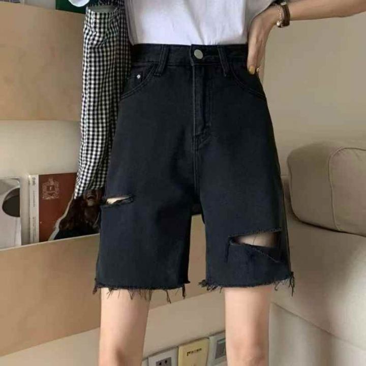 黑色破洞牛仔短裤女夏新款五分裤高腰直筒chic港味宽松阔腿裤42条全清8.8元,码数S到XL,有码数清单[庆祝][庆祝][庆祝]