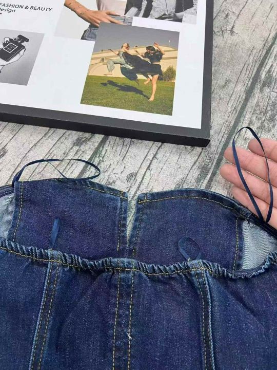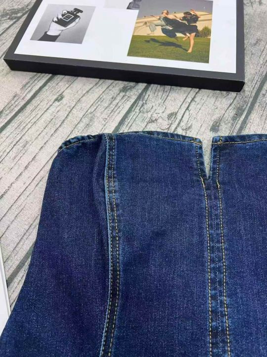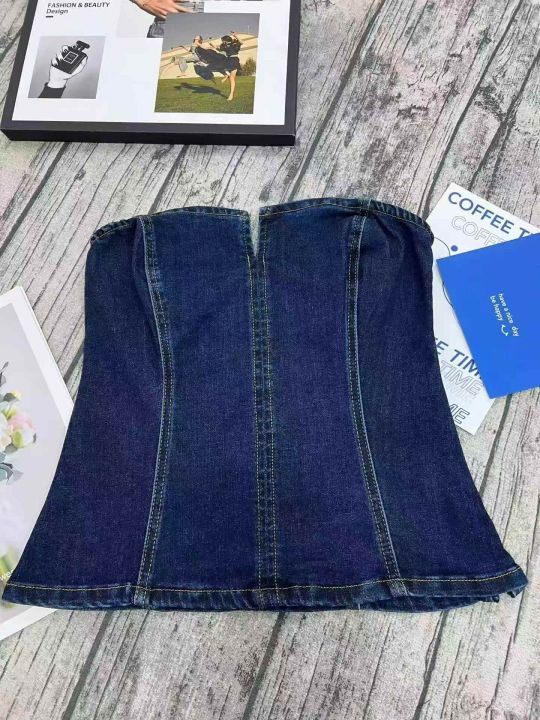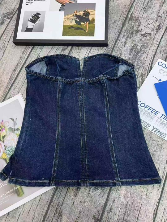 高弹力纯欲风性感辣妹蓝色抹胸背心女夏季新款修身显瘦...