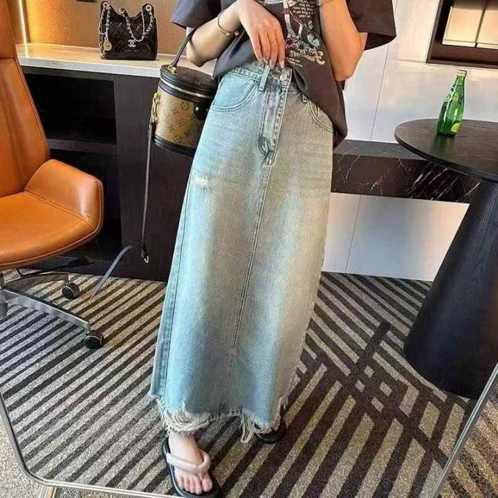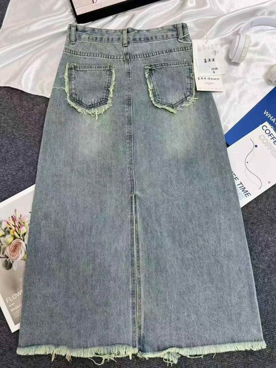 高品质牛仔长裙147条全清11.8元,码数S到XL,图9有码数清单,正品独立包装,浅蓝色牛仔半身裙女夏季新款宽松梨型身材开叉高腰中长裙