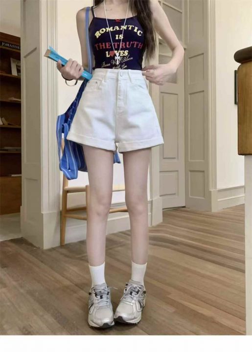 设计感白色卷边牛仔短裤女显瘦宽松A字裤夏季阔腿热裤1...