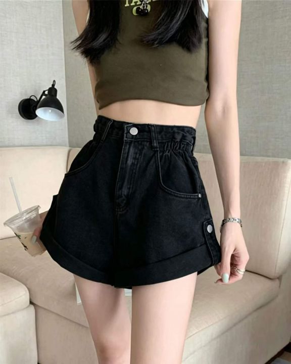 卷边牛仔短裤女夏季松紧腰阔腿高腰宽松a字梨形身材裤子25条全清9.8元,码数SM,单款单色,正品独立包装,质量很好