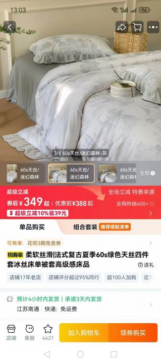 法式复古花边款60s天丝四件套标准尺寸200套价格便宜...