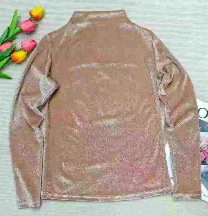 女装春款半高领显瘦洋气百搭丝绒打底衫,260件,1-5码...