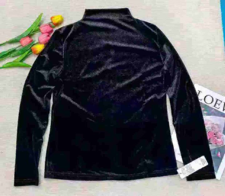 女装春款半高领显瘦洋气百搭丝绒打底衫,260件,1-5码...