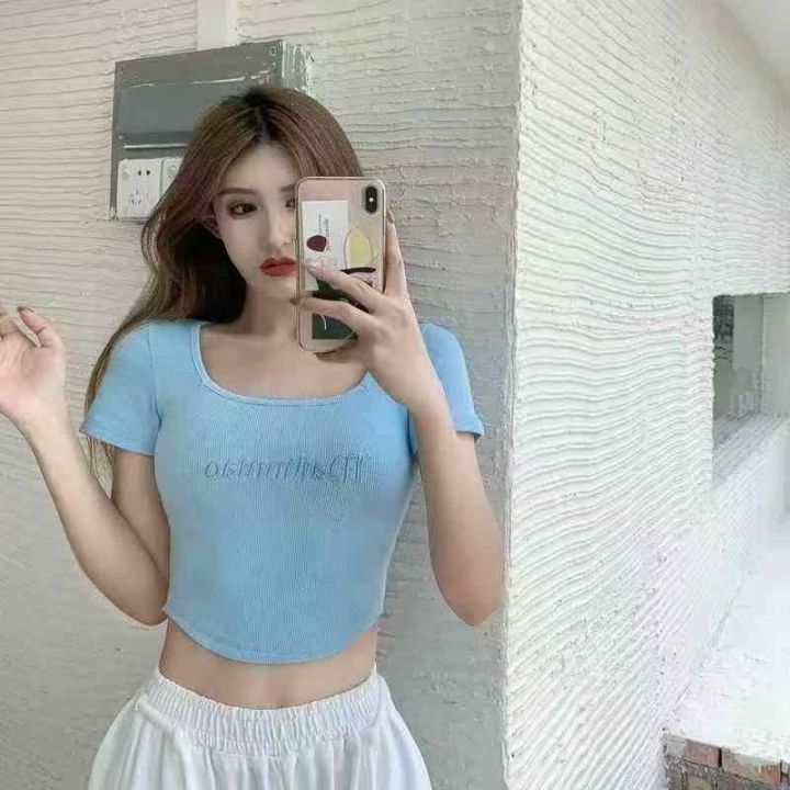 1600件\'辣妹U领垂感刺绣设计T恤,码数M-2XL,(高弹)独立包装,货品新净,品质️分货➕1,货号001#30