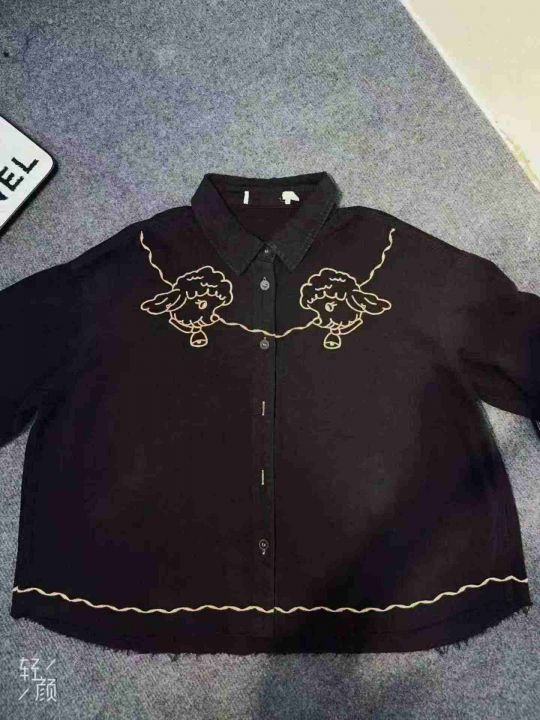 线条绣花波浪衬衫女,品牌剪标,纯棉重磅,面料:纯棉,颜色:黑色,特点刺绣,独立包装,货品新净,470件左右,全清12.8分货+1