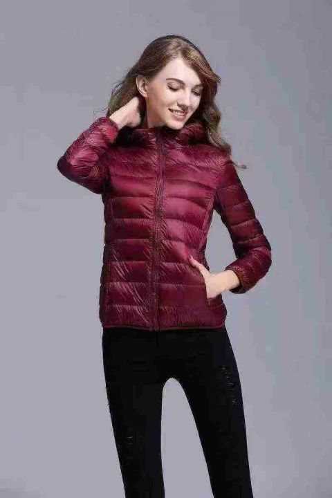 12000件女装轻薄款羽绒服!时尚轻便,有帽有立领,质量非常好,真正羽绒,全有独立包装,S一4LX,全清便宜24元,分货加1