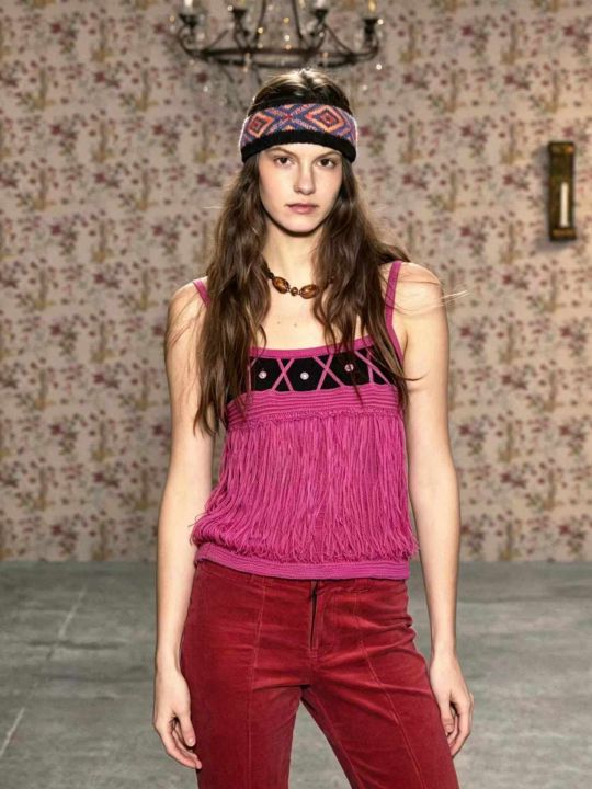 外贸带钻流苏吊带背心女夏季美式针织设计感宽松大版修...