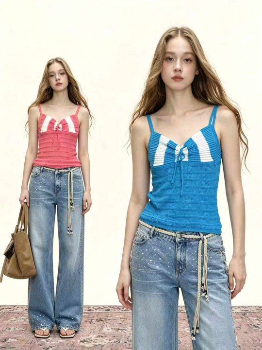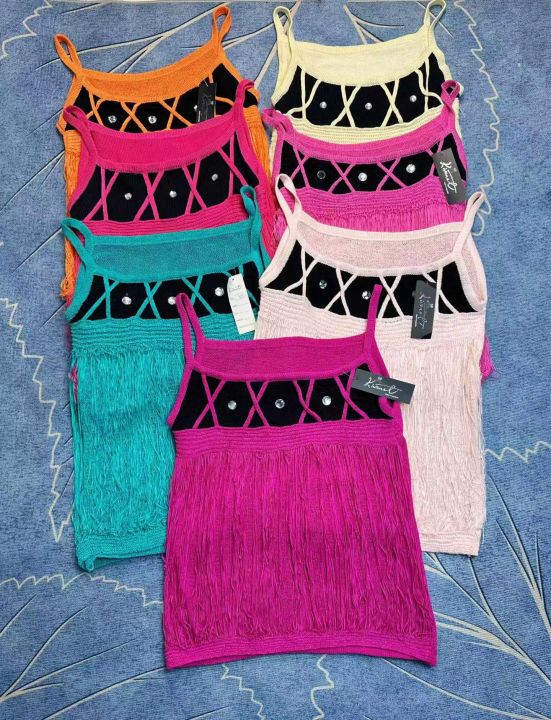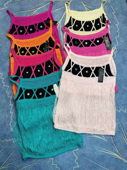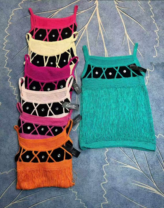 外贸带钻流苏吊带背心女夏季美式针织设计感宽松大版修身吊带上衣,独立包装带吊牌,两个款,一个款273件,一个款190件,清4.8,分➕0.5