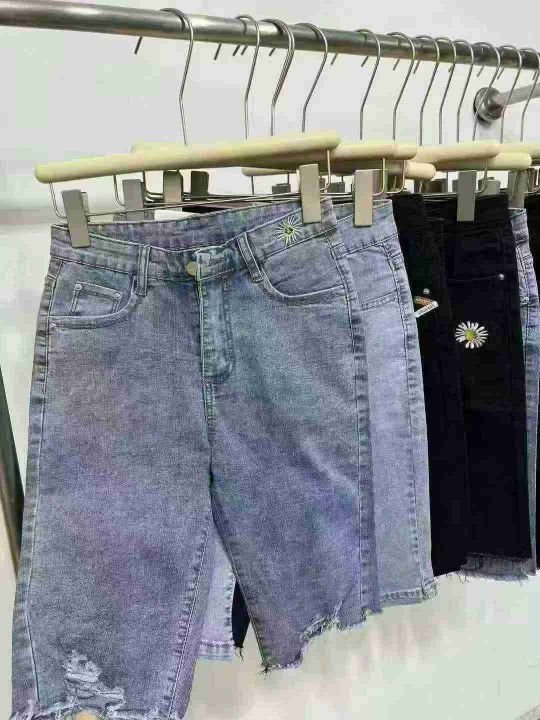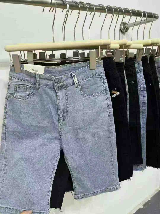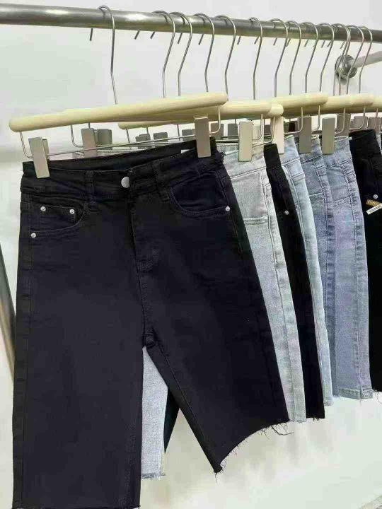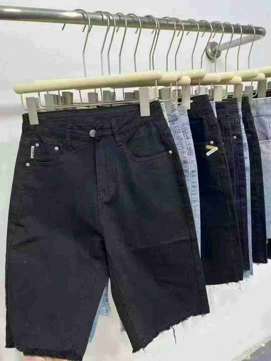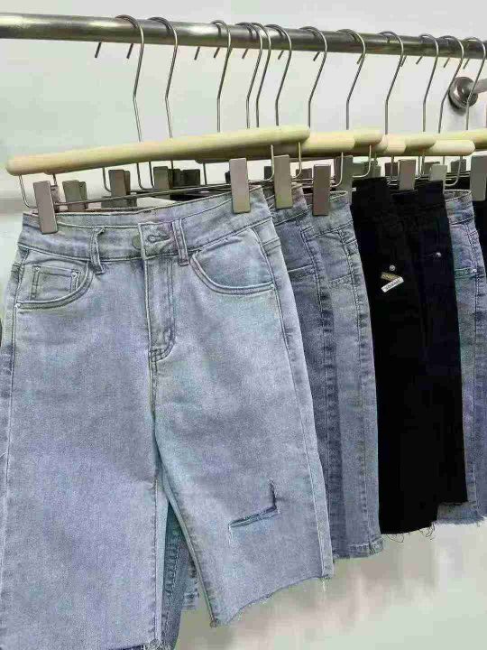 中山高品质棉弹女装牛仔中裤☕️2800条全清7.8元 分货+1 码数s到xxl(25-30)小整图片视频款,全部都有弹力,正品独立包装。系列款蓝色黑色货品很新,修身弹力五分牛仔短裤女夏季新款高腰显瘦毛边五分骑行中裤