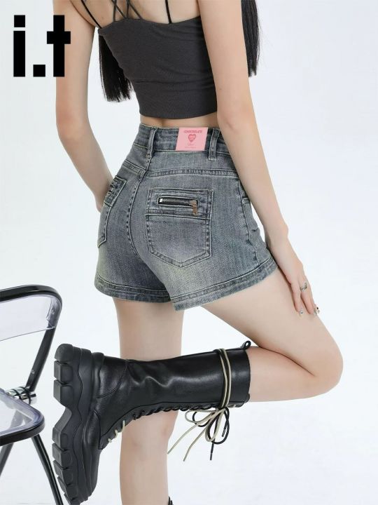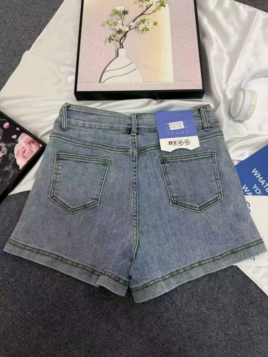 弹力牛仔短裤美式复古辣妹牛仔短裤女夏季超火修身显瘦...